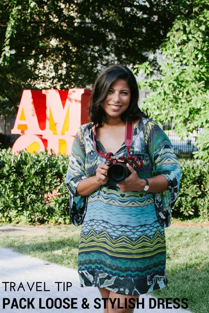 A few weeks ago, I had photos for my media kit taken by the amazing Julien from the style blog, It’s Julien. When choosing looks for the shoot, I decided to go with one of my favorite travel uniforms: muumuu (loose dress), tote, and flats. One of my favorite dresses is a DVF short loose dress (find one similar on sale here) I picked up at Saks years ago but never gets old. I can wear it with tights in the winter and sandals or flats in warm weather. It also dresses down for sightseeing and up with heels for dinner. It’s easy to pack and the light material makes it easy to fit in a carry-on or even a weekend bag.